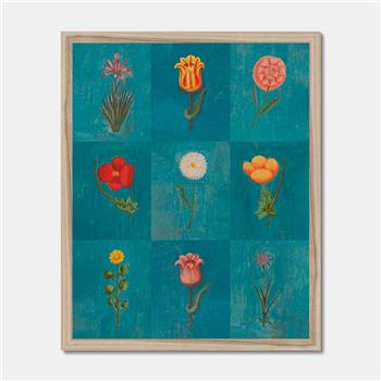 LÁMINA ENMARCADA FESTIVAL DE FLORES AZUL FINE ART A3 - MADERA NATURAL