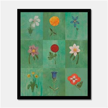 LÁMINA ENMARCADA FESTIVAL DE FLORES VERDE FINE ART 16 X 20 - MADERA NATURAL
