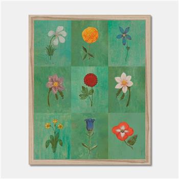 LÁMINA ENMARCADA FESTIVAL DE FLORES VERDE FINE ART A3 - MADERA NATURAL