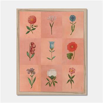 LÁMINA ENMARCADA FESTIVAL DE FLORES ROSA FINE ART A3 - MADERA NATURAL