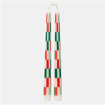 VELAS DE CENA CUADROS ROJO Y VERDE - 25CM (2 UDS)