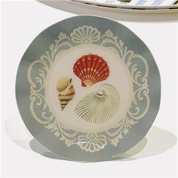 BANDEJA REDONDA ONDULADA DE METAL ESMALTADO - CONCHAS MARINAS