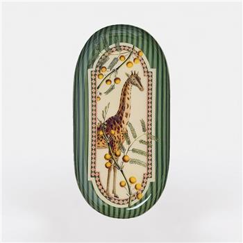 BANDEJA OVALADA DE METAL ESMALTADO - JIRAFA