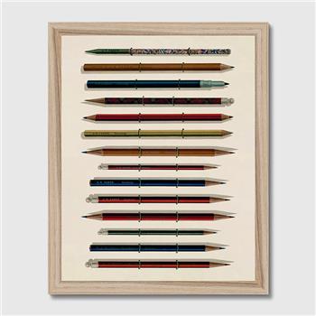LÁMINA ENMARCADA LÁPICES Y TIZAS VINTAGE FINE ART 16 X 20 - MADERA NATURAL