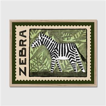 LÁMINA ENMARCADA CEBRA VINTAGE FINE ART 16 X 20 - MADERA NATURAL