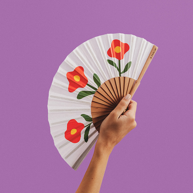 Abanico Artesanal con Diseño floreal y serigrafia – 100% Made in Spain