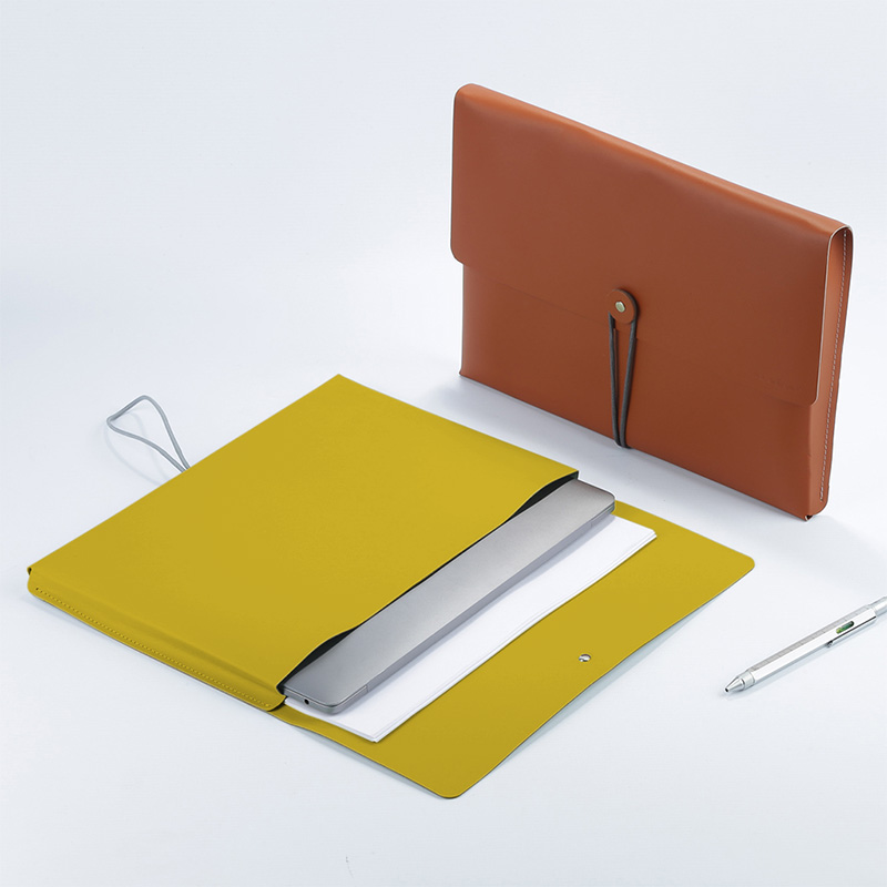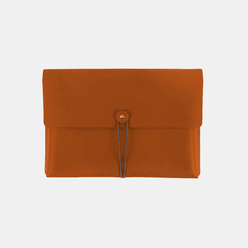 Este porta papeles tamaño A4, realizado con un diseño minimalista y agradable al tacto, es ideal para llevar y proteger tanto papeles como documentos. Es un producto sostenible y duradero, hecho a mano con cuero 100% reciclado.