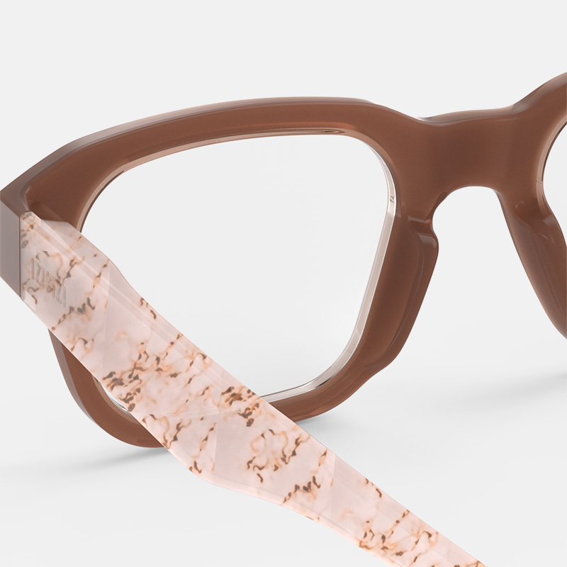 Material de base biológica La montura de las gafas está hecha de poliamida de base biológica al 45%, derivada del aceite de ricino