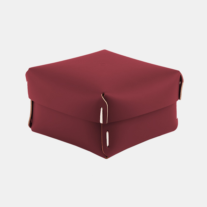 Caja mediana, multiuso, ideal para organizar y ordenar tus espacios. Es un producto sostenible y duradero, hecho a mano con cuero 100% reciclado.