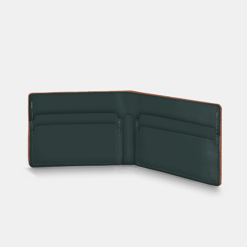 Billetera compacta de diseño atemporal, elegante y agradable al tacto. Hecha a mano, de cuero 100% reciclado. Superficie antisuciedad y fácil de limpiar.