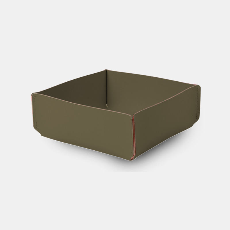 Canasta Ruca Medium Cesta cuadrada mediana, sobria y elegante. Es un producto sostenible y duradero, hecho a mano con cuero 100% reciclado.