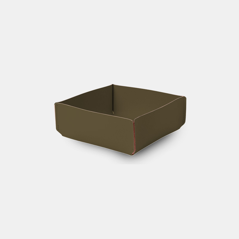 Canasta Ruca Small Cesta cuadrada chica, sobria y elegante. Es un producto sostenible y duradero, hecho a mano con cuero 100% reciclado.