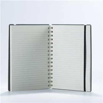 Nuestro Cuaderno Studio A5 de 80 hojas rayadas es una herramienta útil para trabajar o estudiar. Atractivo y funcional con un anillado extra firme que garantiza una experiencia de escritura a 360 grados. Es un producto sostenible y duradero, hecho a mano con cuero 100% reciclado.