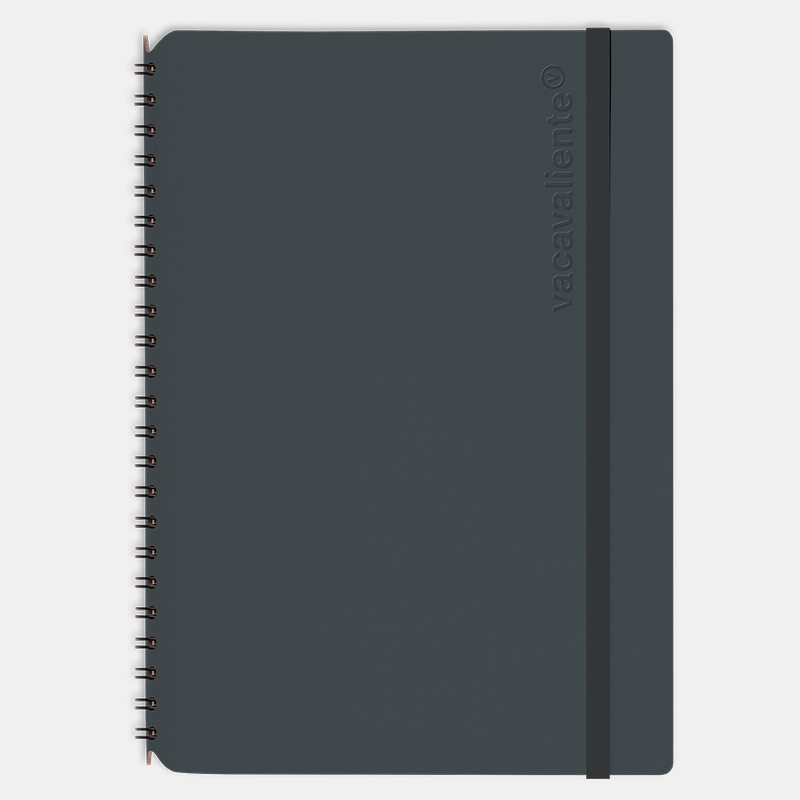 Cuaderno con formato de libreta, tamaño A5 de 80 hojas rayadas y espiral protegido. Diseñado para la escritura espontánea y recreativa. Es un producto sostenible y duradero, hecho a mano con cuero 100% reciclado.