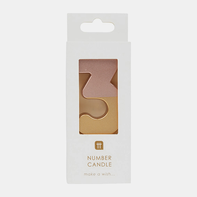 Añade un toque elegante a tartas de cumpleaños o aniversarios con esta vela número 0 en tonos rosa y dorado. No contiene purpurina, lo que la hace más ecológica.