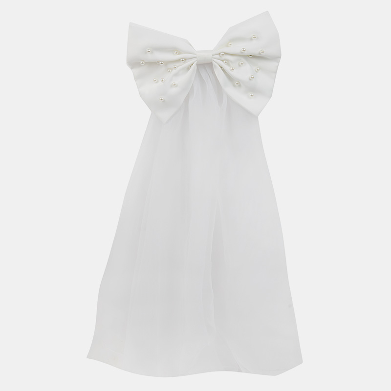 Este velo blanco con lazo de perlas es el complemento perfecto para la futura novia en su despedida de soltera. Reutilizable para futuras novias. Tamaño: 40 cm