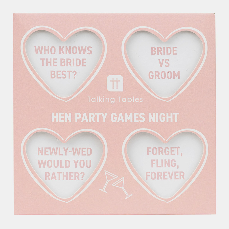Pack de 4 juegos para animar la despedida de soltera: - ¿Quién conoce mejor a la novia?- Novia vs Novio- ¿Preferirías...? (versión recién casados)- Forget, Fling, ForeverTamaño de caja: 10 x 10 x 5 cmProducto: ReutilizablePackaging: ReciclableCómo usar: Ideal para romper el hielo entre invitadas o regalar a otra novia futura.
