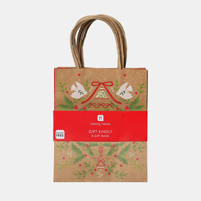 Pack de 8 bolsas de regalo con diseño navideño pintado a mano. Parte de la colección “Gift Kindly”, sostenible y combinable con papel y etiquetas Folklore. Tamaño: 19 cmProducto: sin plásticoRecomendación: Exponer junto a otros productos de envoltorio Folklore