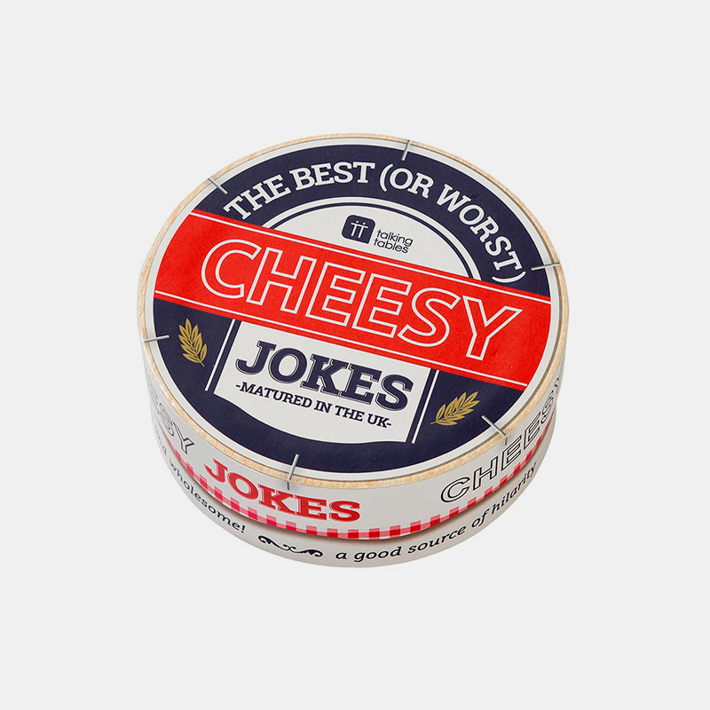 Pack con 64 chistes “cursis” sobre queso, perfectos para compartir en cenas navideñas. Diseño divertido y formato ideal para regalo de amigo invisible o relleno de calcetín. Unidad POS: 8 juegosDiseño: Tubo amarillo estilo queso