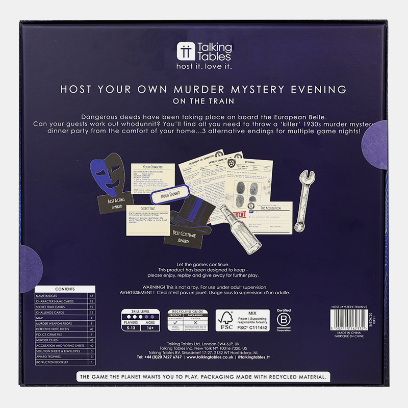 Con este kit podrás organizar una inolvidable noche de misterio y asesinato ambientada en los años 20. Perfecto para una cena temática de época o una noche de juegos en familia: ¿podrán tus invitados resolver el caso antes de que el asesino vuelva a actuar?