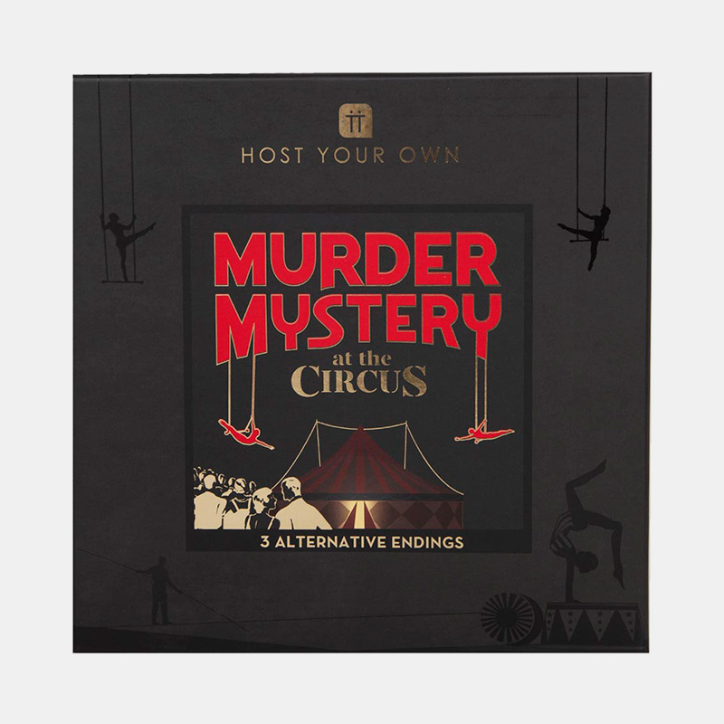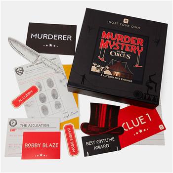 Con este kit podrás organizar en casa una noche de misterio y asesinato con temática circense. Estira los músculos y agudiza el ingenio mientras tú y tus invitados seguís las pistas para descubrir quién es el astuto asesino.