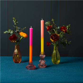 Pack de inicio con 6 velas rosa y 6 azules de diseño bicolor. Cada pack contiene 2 velas de 25 cm. Ideal para probar variedad de colores en tiendas de decoración o regalos.