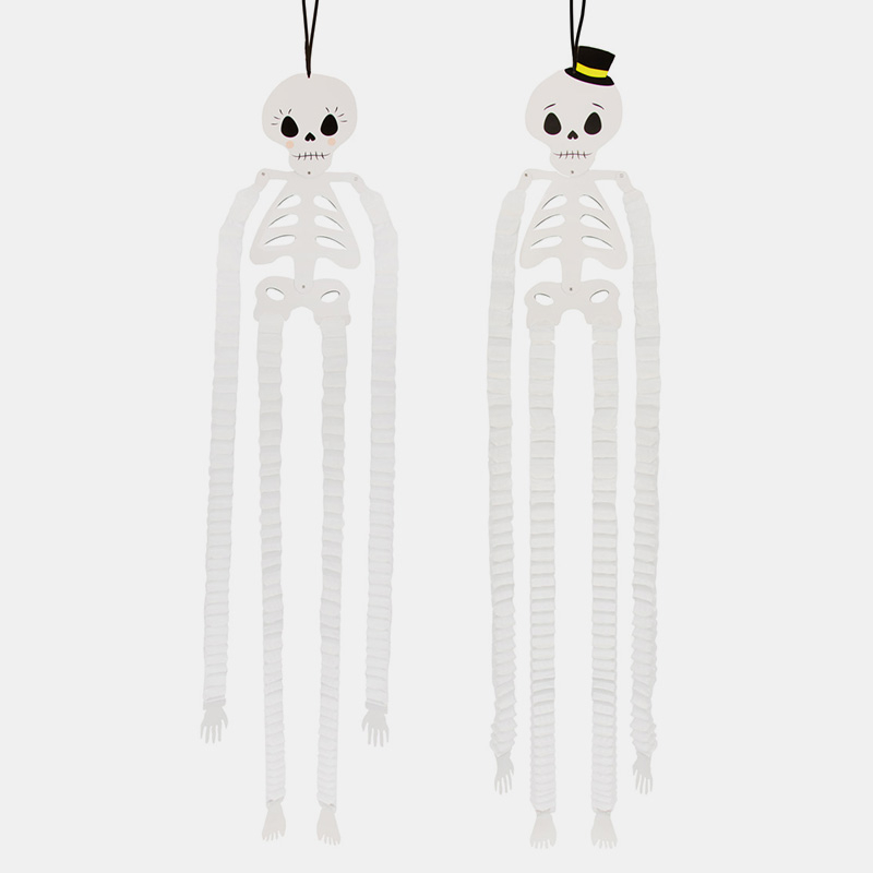 Figuras de papel con forma de esqueleto Sr. y Sra., de 1 m de altura. Perfectas para colgar del techo o decorar puertas en Halloween. Reutilizables y reciclables.