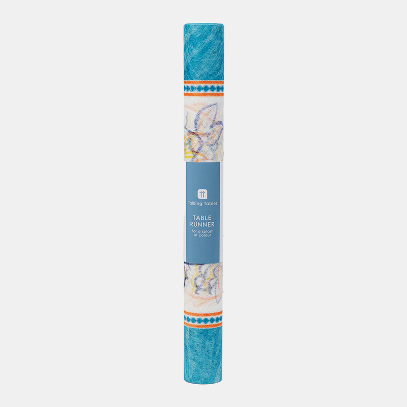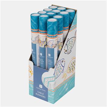 Camino de mesa con diseño de peces en tonos mediterráneos. Ideal para reuniones familiares y comidas al aire libre. Se puede cortar en individuales. Tamaño: 2 mProducto: ReutilizableEmbalaje: Reciclable