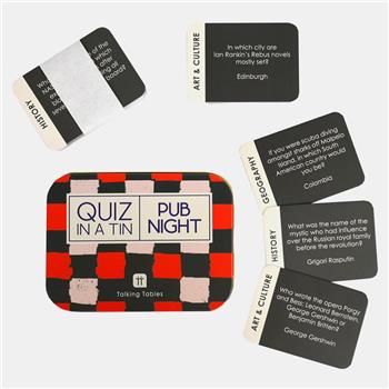Juego de trivia con ambiente de pub: geografía, TV, cine, deportes y más. Formato portátil para reuniones en casa. Incluye: 100 tarjetas a doble cara Edad: 14+