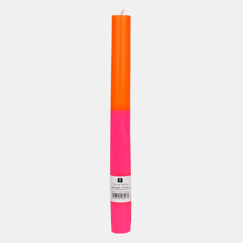 Vela combinada en tonos naranja quemado y rosa. Añade un toque moderno a mesas de otoño o Halloween. Tamaño: 28 cm Pack POS: 25 unidades Producto: Diseñado para durar Embalaje: Reciclable