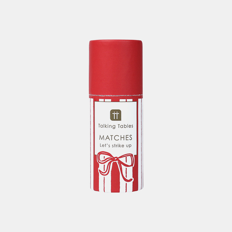 Caja de cerillas compacta con diseño de lazo rojo. Contiene 45 unidades. Ideal como relleno de calcetín o para acompañar velas navideñas. Tamaño caja: 10 cm Material: Madera Producto: Desechable Embalaje: Reciclable