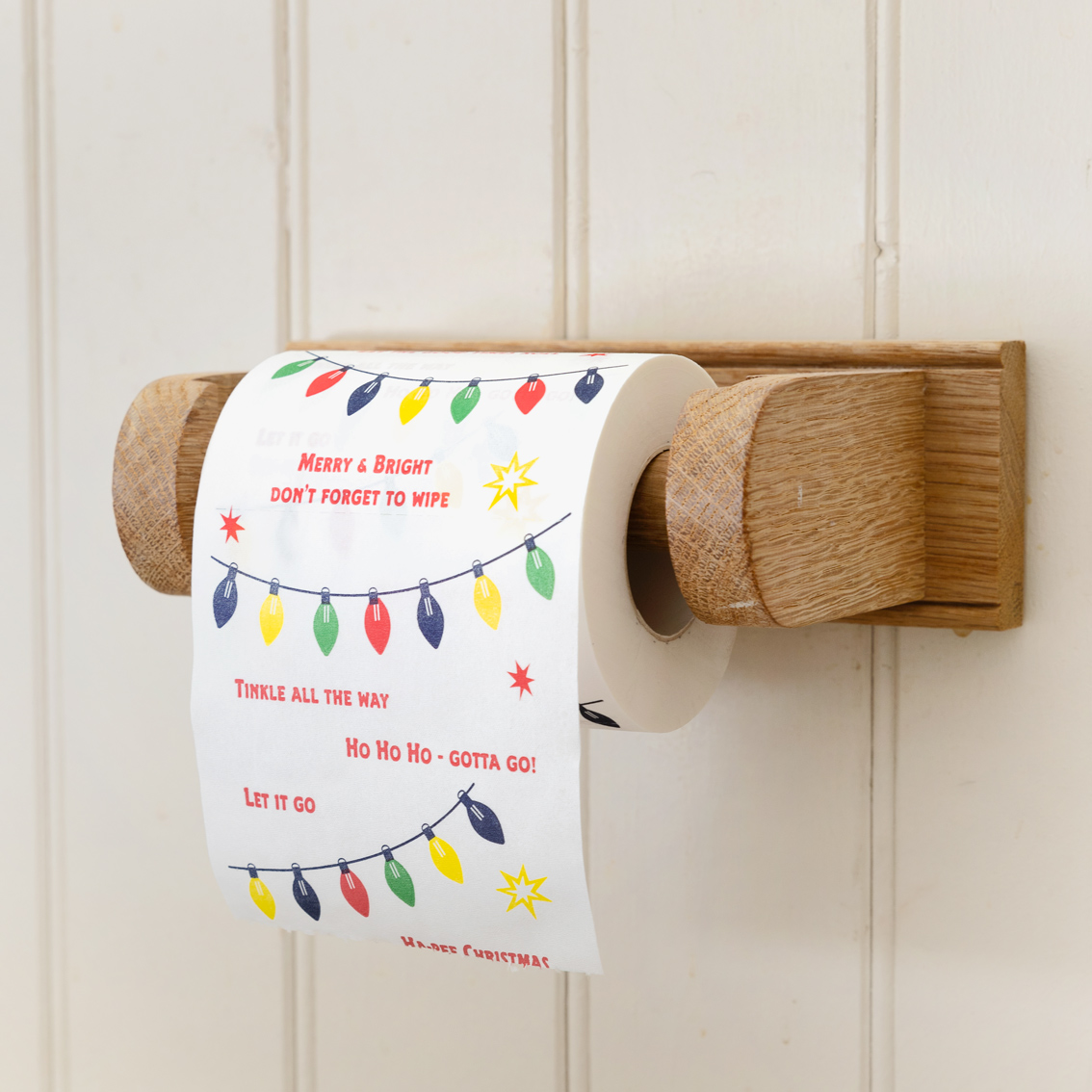 Papel higiénico decorado con ilustraciones navideñas y frases cómicas como “Tinkle all the way”. Regalo de broma perfecto para Secret Santa. Tamaño: 300 hojas / 2 capas Material: Papel FSC Producto: Reciclable Embalaje: Reciclable
