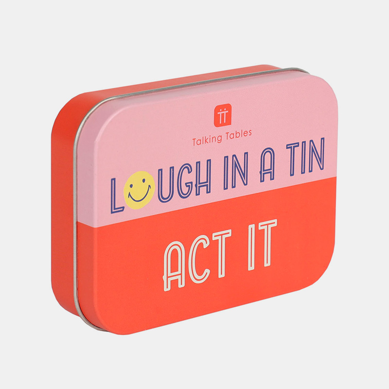 Convierte cualquier reunión en un espectáculo con Laugh in a Tin – Act, el juego de bolsillo repleto de retos de interpretación. Su dinámica es sencilla: cada carta propone un desafío que tendrás que representar sin palabras, mientras el resto intenta adivinarlo. Un formato clásico de mímica y actuación, pero guardado en una lata compacta y resistente que puedes llevar a todas partes.