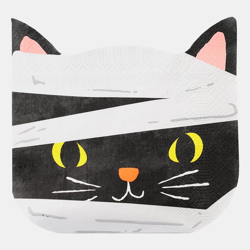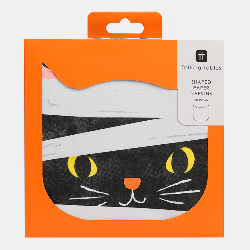 Servilletas de papel con forma del gato Coco. Perfectas para Halloween o fiestas temáticas. Hechas de papel 3 capas FSC, 100% reciclables. Tamaño: 33 x 33 cm Pack: 20 + 1 extra