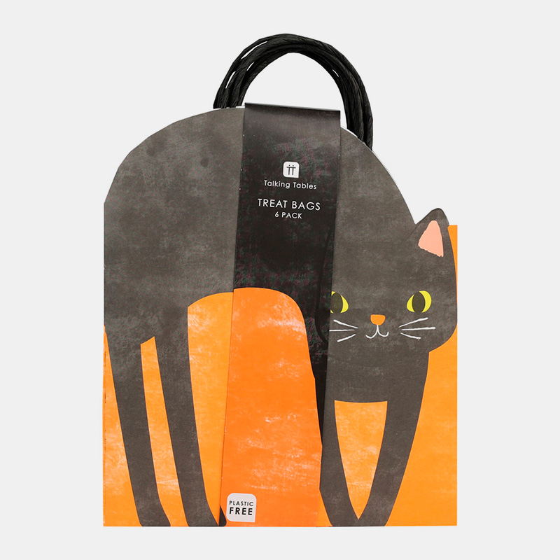 Bolsas de papel con asas resistentes y diseño de gato de Halloween. Perfectas para chuches, regalos o fiestas. Fabricadas en papel sostenible. Tamaño: 25 cm (con asas) Pack: 6 unidades