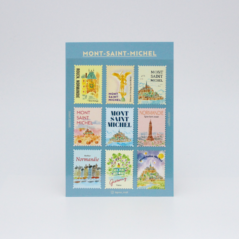 Set de 9 adhesivos, cada uno con una imagen de un monumento o vista típica de la ciudad.