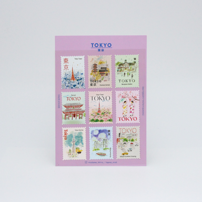 Set de 9 adhesivos, cada uno con una imagen de un monumento o vista típica de la ciudad.