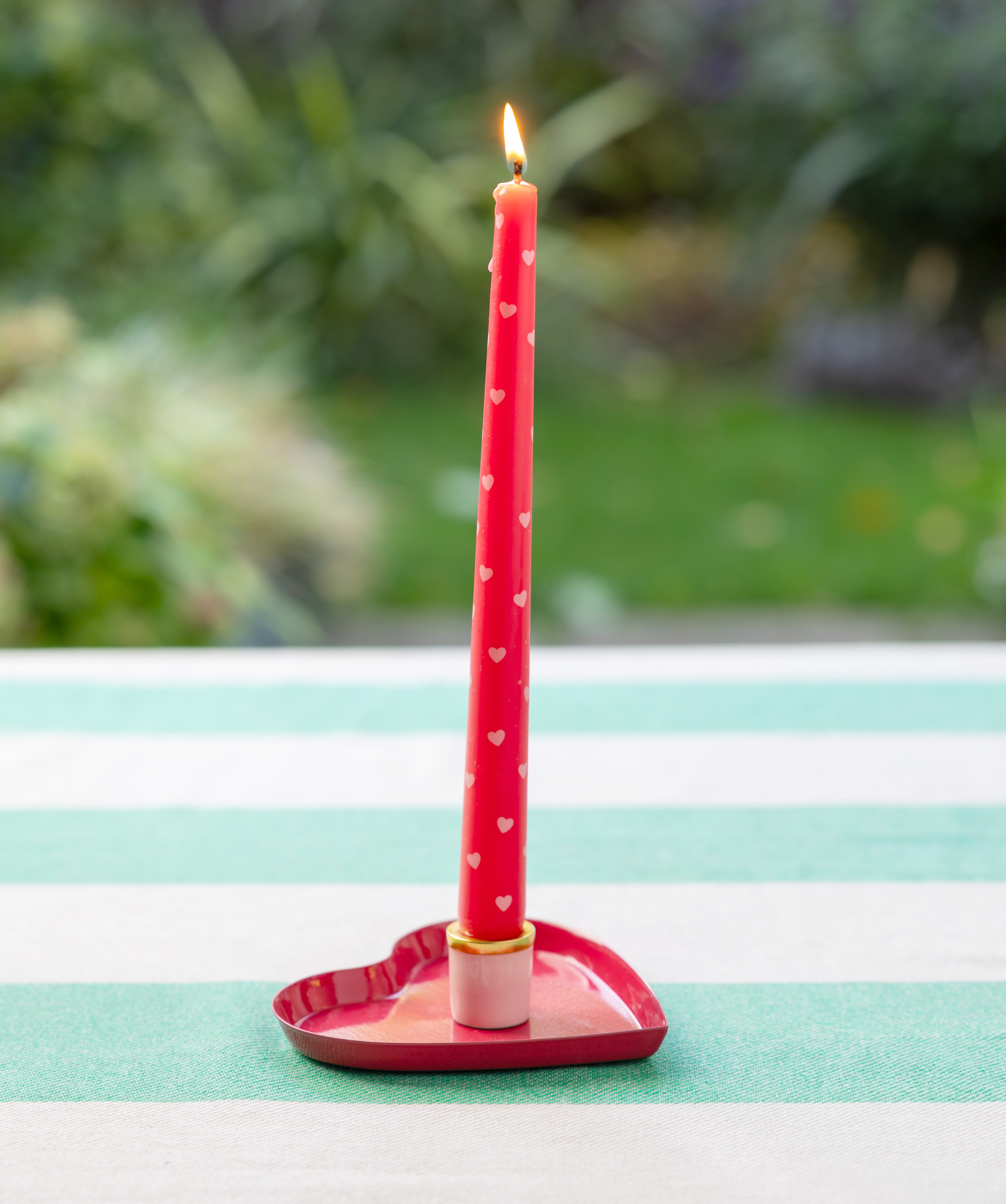 En cada paquete encontrarás dos velas de cena en rosa pastel con ilustraciones de corazones. Ideales para fiestas en el jardín y almuerzos largos y relajados al aire libre,cada vela no tiene fragancia y dura hasta ocho horas.