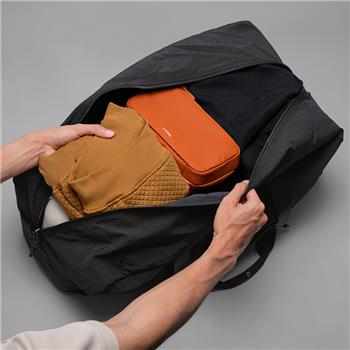 Se pliega fácilmente y queda en un formato muy compacto para llevar dentro de la maleta o la mochila. Disponible en Negro y Oliva.