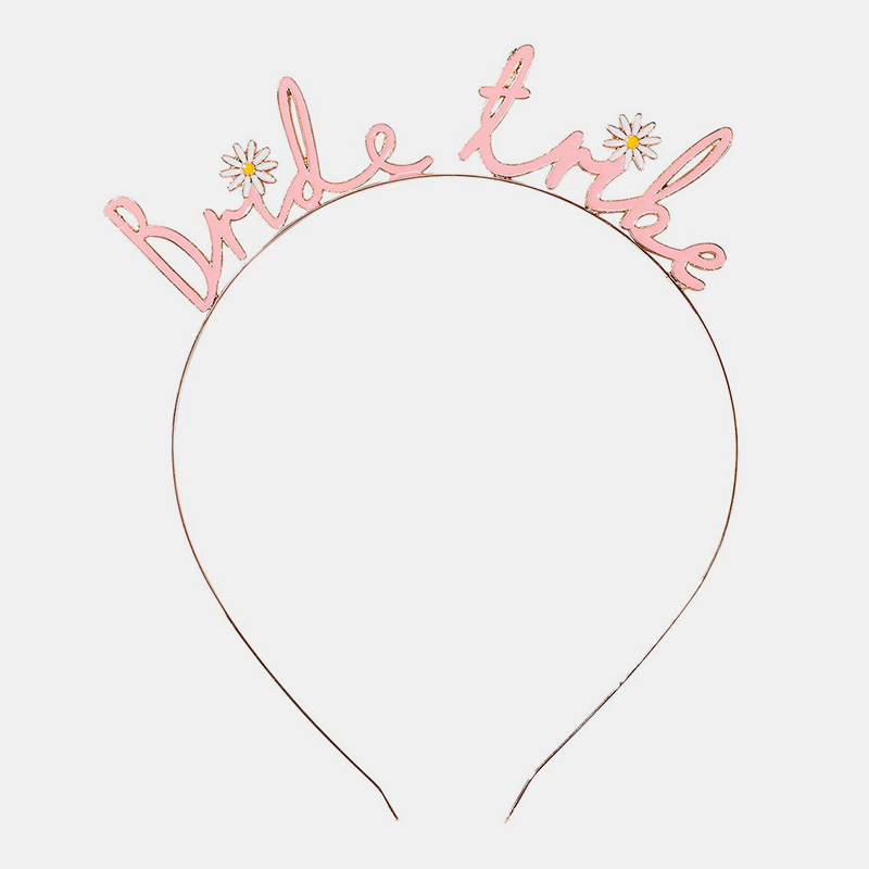 Celebra con estilo con esta bonita diadema rosa. Con las palabras Bride Tribe en una elegante escritura metálica y delicados detalles de margaritas, es un accesorio divertido y floral para que el grupo de la novia lo lleve con orgullo.