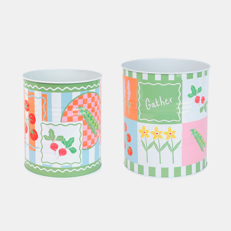 Parte de la colección Bon Appetit, este set de dos latas coordinadas añade estilo bistró al hogar. Cada lata presenta iconos de comida llamativos en colores brillantes, aportando carácter y alegría a cualquier cocina o espacio de trabajo. Fabricadas en lata ligera pero duradera, son prácticas y decorativas. La lata más pequeña se puede guardar dentro de la más grande para un almacenamiento sencillo. Resistente al óxido y a la corrosión, con superficie impresa suave que mantiene el diseño nítido y vibrante. Reciclables y fáciles de manejar, perfectas para el almacenamiento cotidiano.