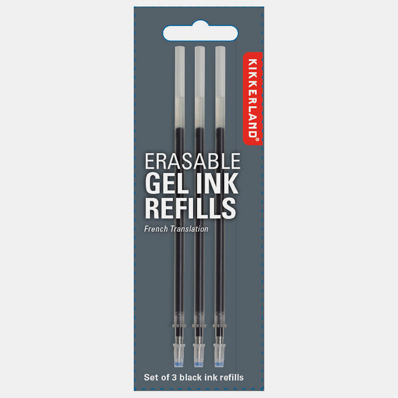 Actualiza tus bolígrafos Kikkerland con este set de 3 recambios de tinta negra borrable. Escribe sin preocupaciones: los errores se corrigen fácilmente, haciendo que cada nota, boceto o apuntes queden perfectos. Ideal para estudiantes, artistas y quienes disfrutan de tomar notas sin desperdicios.