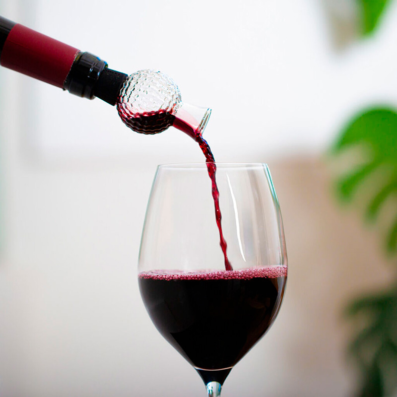 Disfruta de cada copa con estilo gracias a este aireador de vino con forma de pelota de golf. Su diseño permite oxigenar el vino mientras se sirve, resaltando aromas y sabores. Incluye un práctico tapón de silicona removible para mantener el vino fresco. Perfecto para regalar o para impresionar en cualquier ocasión especial.