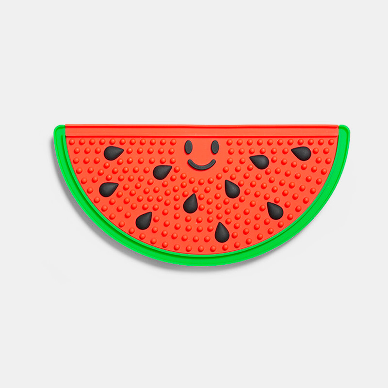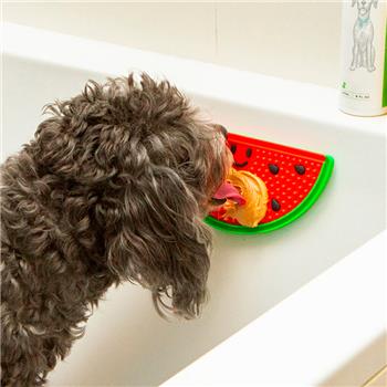 Esta alfombra lamíble es la aliada perfecta para que la hora del baño y el cuidado de tu perro sea más fácil y tranquila. Solo tienes que untar mantequilla de cacahuete, yogur o cualquier otra crema apta para perros, y fijar la alfombra a la pared o al suelo. Su superficie texturizada ayuda a calmar y concentrar al perro mientras lame, reduciendo el estrés y facilitando el cepillado, el baño o el corte de uñas. Fabricada en silicona resistente y fácil de limpiar, combina funcionalidad con un divertido diseño de sandía.