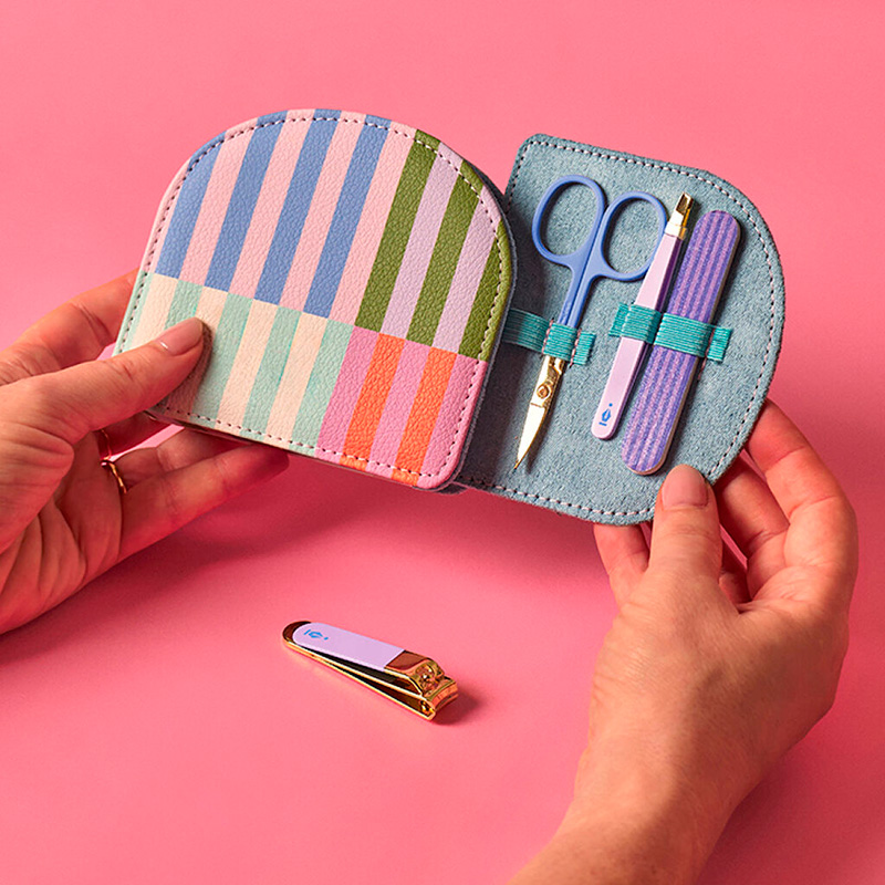 Estuche que reúne todas las herramientas esenciales para un cuidado personal impecable, estés donde estés. Su estuche compacto y estiloso mantiene organizados los accesorios básicos: tijeras, pinzas, cortaúñas y una lima, todo fabricado con materiales resistentes y de alta calidad.