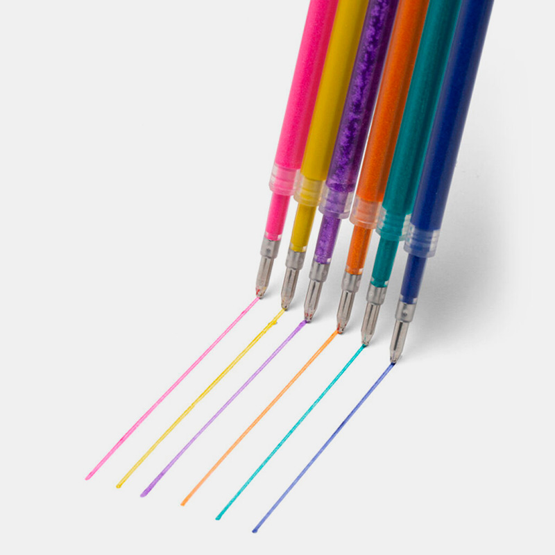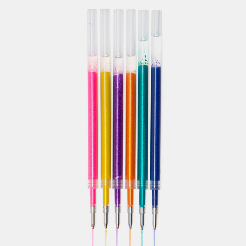 No dejes que tu creatividad se detenga: el Set de Recambios de Tinta Gel Brillante Inkerie mantiene tus bolígrafos favoritos siempre listos para escribir, dibujar o crear. Cada cartucho de tinta de flujo suave ofrece los mismos colores vibrantes y efecto glitter que conoces y amas, ideal para diarios, planners, manualidades y escritura diaria. Fácil de reemplazar y duradera, esta tinta garantiza que tus proyectos nunca se queden sin brillo.