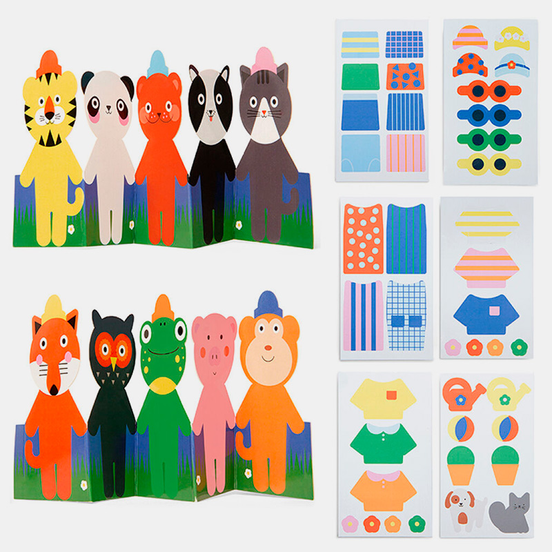 Este setofrece una experiencia creativa sin límites gracias a sus 10 animales y 6 hojas de pegatinas reutilizables. Los niños pueden mezclar, combinar y vestir a cada animal con ropa y accesorios divertidos, diseñando infinitos estilos y personajes.