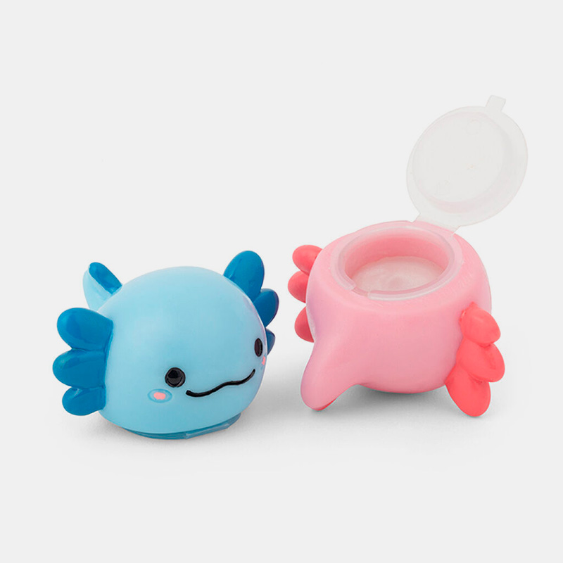 Brillo labial adorable con forma de axolote, sabor fresa, divertido y único para usar todos los días.