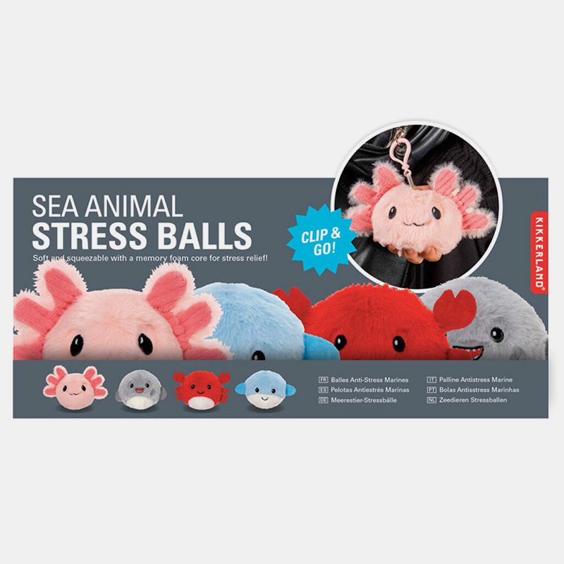 Pelotas antiestrés suaves con forma de animales marinos, ideales para aliviar tensión y brindar comodidad.