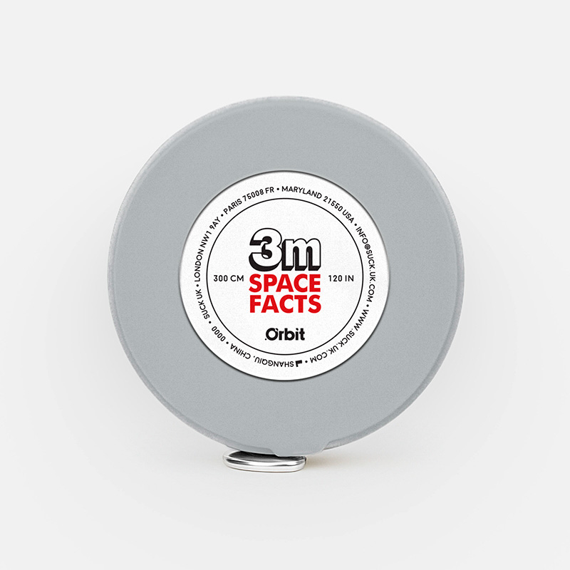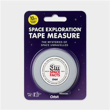 Cinta métrica de doble cara con bloqueo automático, llena de fascinantes datos del espacio exterior. Distancias comparativas de objetos celestes, desde basura espacial hecha por el hombre hasta agujeros negros lejanos. Incluye también una historia de la exploración espacial humana. Un gran regalo para niños curiosos y adultos frikis (o cualquiera que necesite una cinta métrica). 60 datos, desde científicos hasta absurdos, en cm y pulgadas.